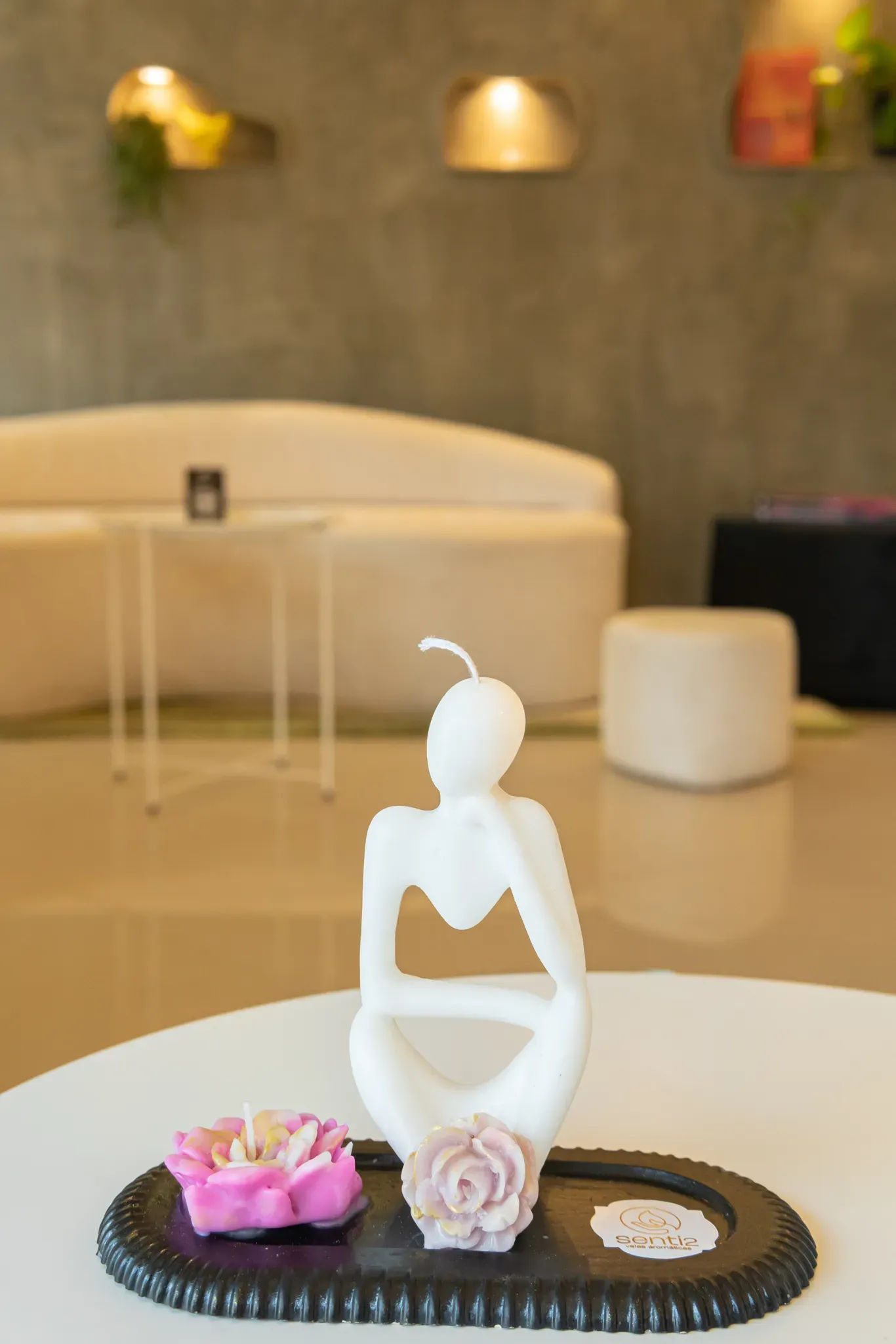 Esta vela de Senti2, inspirada en la icónica escultura de "El Pensador", es más que un simple objeto de decoración; es una pieza de arte que evoca la reflexión y la sofisticación.